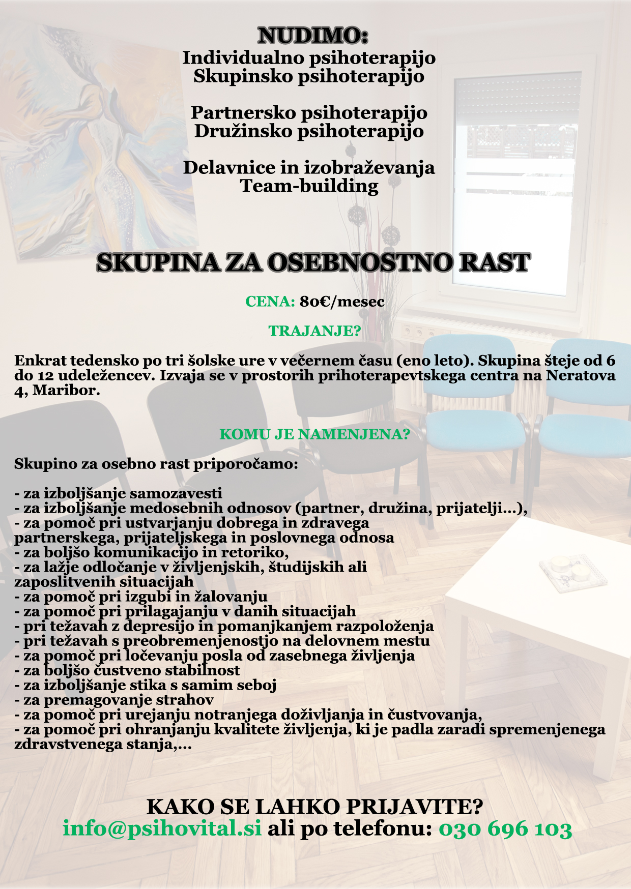 Več: SKUPINA ZA OSEBNOSTNO RAST IN RAZVOJ - MARIBOR
